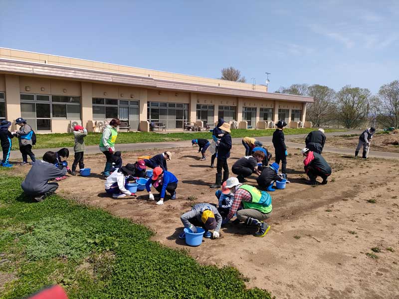 畑では、これからの作付けに向けて、草取りや石拾いを行いました。参加者は声を掛け合いながら丁寧に作業を進め、畑は次第にきれいに整えられていきました。児童たちも一生懸命に手を動かし、地域の方々とふれあいながら活動する姿が見られました。