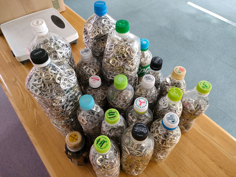 これらのプルタブは、集めることでリサイクル資源として活用され、地域の福祉活動や支援を必要とする方々のために役立てられます。